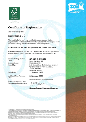 In our operations, we follow principles to ensure environmentally responsible, socially beneficial, and economically sustainable forest management.